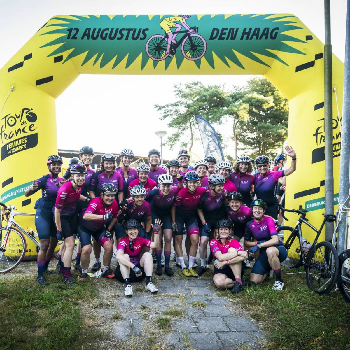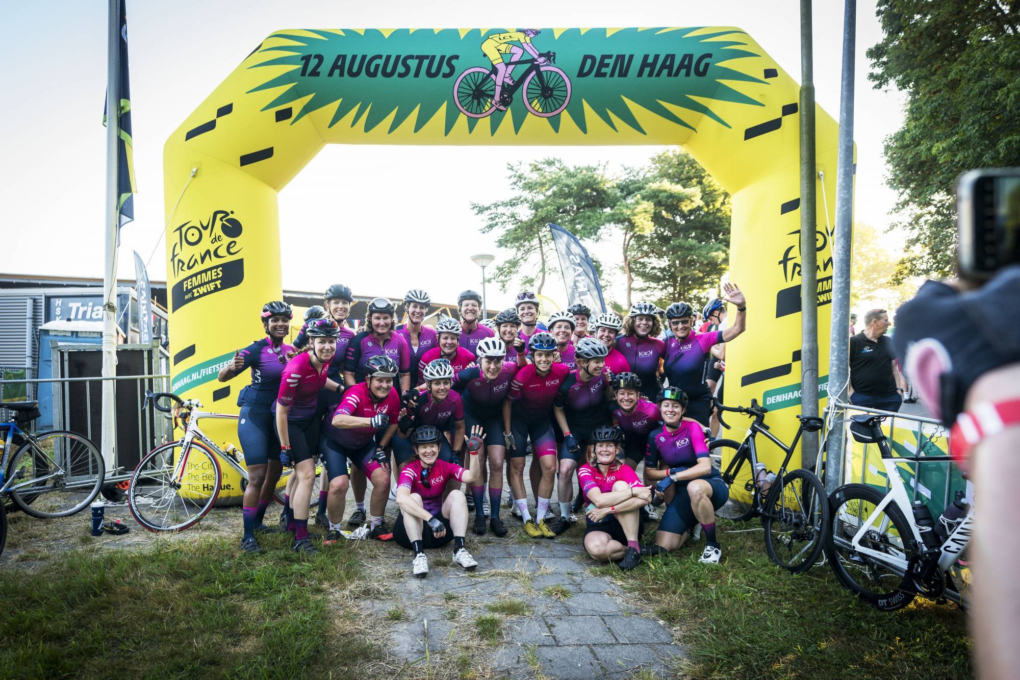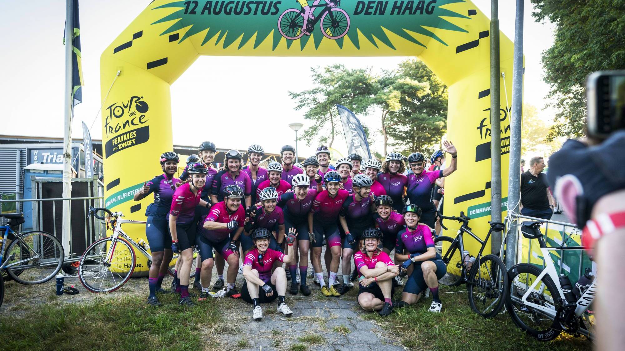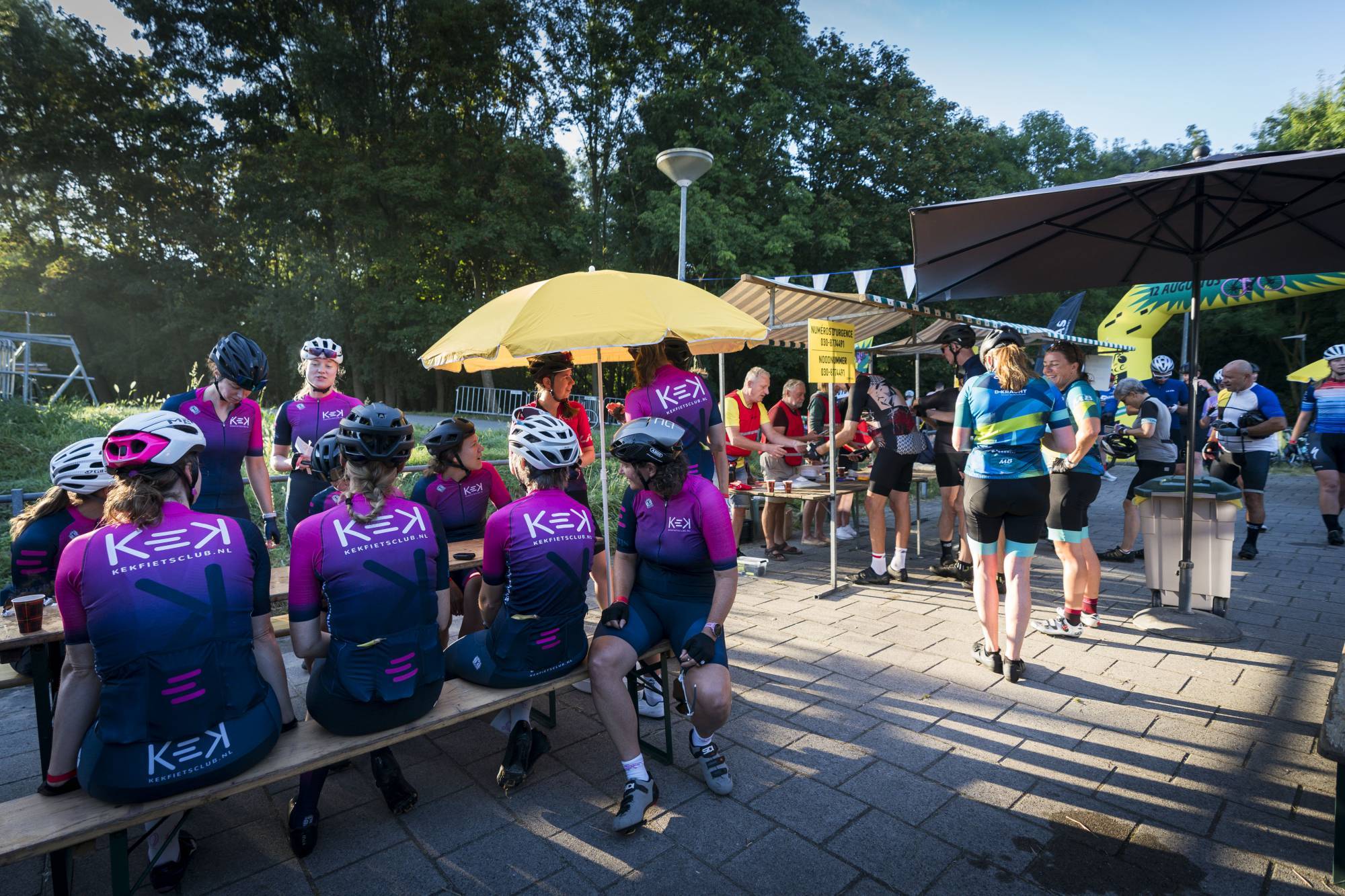 Bij de finish een fietsenstalling met toezicht |